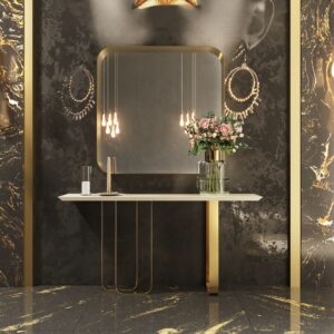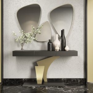 Recibidor suspendido en negro y dorado con espejo – Estilo moderno y exclusivo