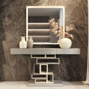 Recibidor moderno con base geométrica y espejo rectangular – Diseño exclusivo