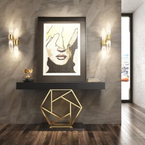 Recibidor negro y dorado con base geométrica hexagonal – Diseño moderno y exclusivo